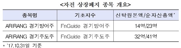 두 etf의 신탁원본액이 50억원 미만까지 줄어들었으며, 한화자산운용이 10월31일 ‘arirang 주도업종’ etf를 상장하며