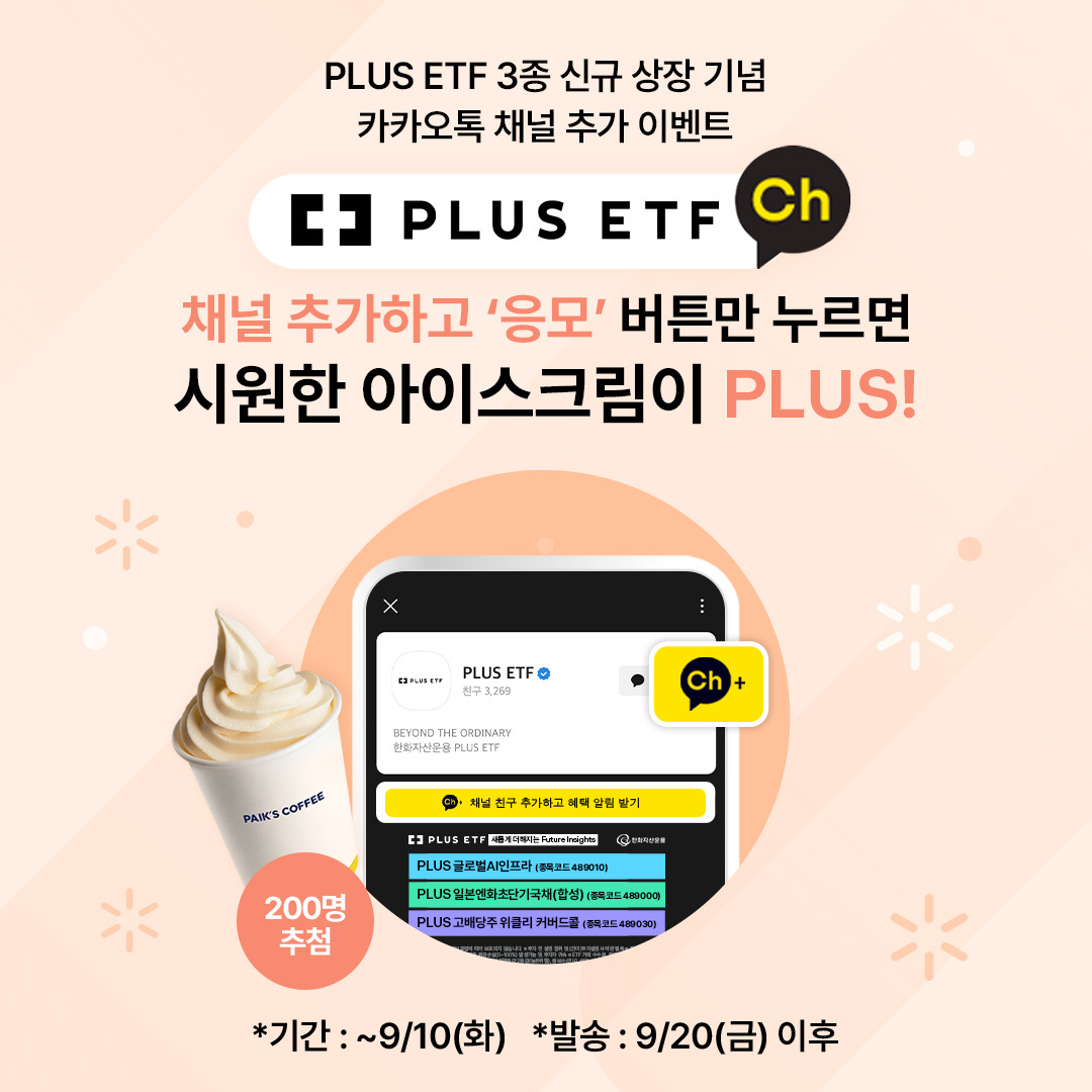 PLUS ETF 채널 친구 추가하고, 시원한 아이스크림 받아가세요!