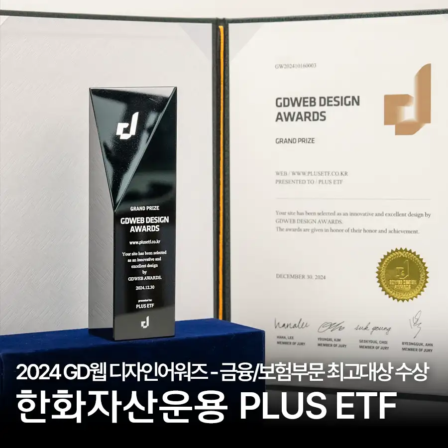 한화자산운용 PLUS ETF, ‘GD웹 디자인어워즈’ 금융·보험 부문 최고대상 수상