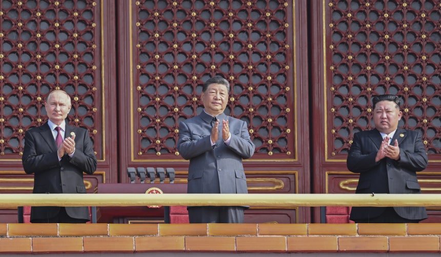 전승절. 중국 시진핑 주석, 러시아 푸틴 대통령, 북한 김정은 국무위원장이 천안문