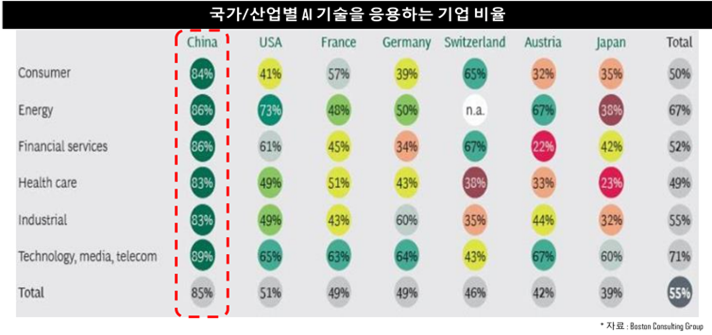 기술을 도입하여 사용하고 있는 전세계 주요국들과 달리 중국은 다양한 산업군에 걸쳐 AI를