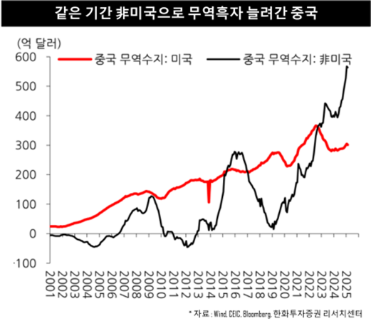 수입사장에서의 점유율도 16년 만에 1위에서 3위로 내려앉았습니다. 그 결과 현재에는 중국의 非미국 무역수지가 대미국 무역수지를 상회하는 상황입니다.